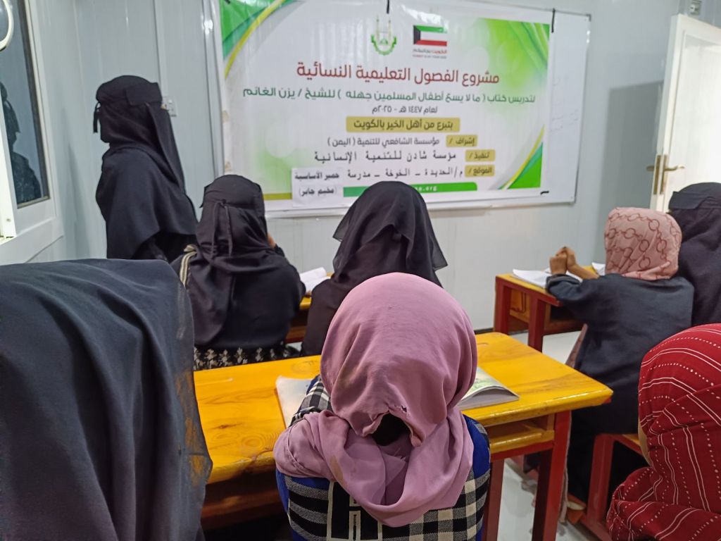 تواصلاً لبرنامج الفصول التعليمية النسائية الذي تنفذه مؤسسة شادن للتنمية الإنسانية وبإشراف من مؤسسة الشافعي للتنمية، تواصل المؤسسة تقديم سلسلة من الدروس التوعوية والتعليمية الموجهة للنساء في مدرسة حمير الأساسية بمخيم جابر وكذلك في مخيم الجشة بمديرية الخوخة.